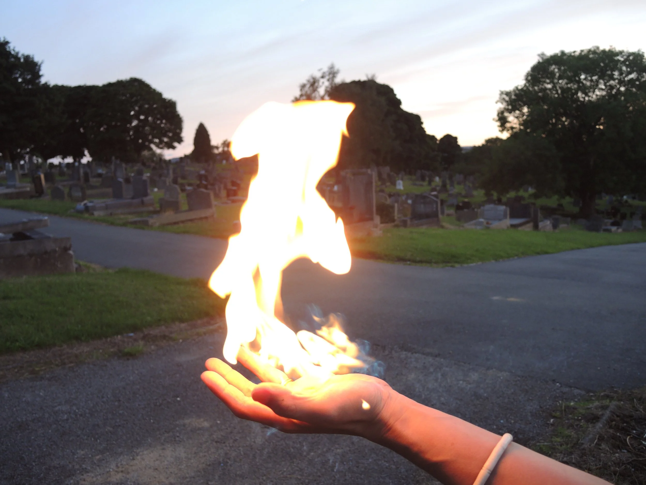 「火」、「光」是立體的,它劃破黑暗空間,讓參與祭祀者觸碰和試探禁忌,可以是溝通「兩地」的開端,可以是進入禁忌的過程,可以是主動的探索,可以是被動的參與,也可以是禁忌的終結,終結之後只餘下灰燼。當然,一件事的終結可以是另一件事的開始。三藩市法例上禁止戶外公共地方進行燒衣化寳,對於傳統鬼節而言,缺少了「火」、「光」、「焚燒」……彷彿與靈界之間接觸不良、訊號微弱,是一種缺失。是次展覽正透過展示「火」、「光」、「焚燒」等與另外一個國度溝通的元素,嘗試搭通「兩地」,去填補這些缺失。